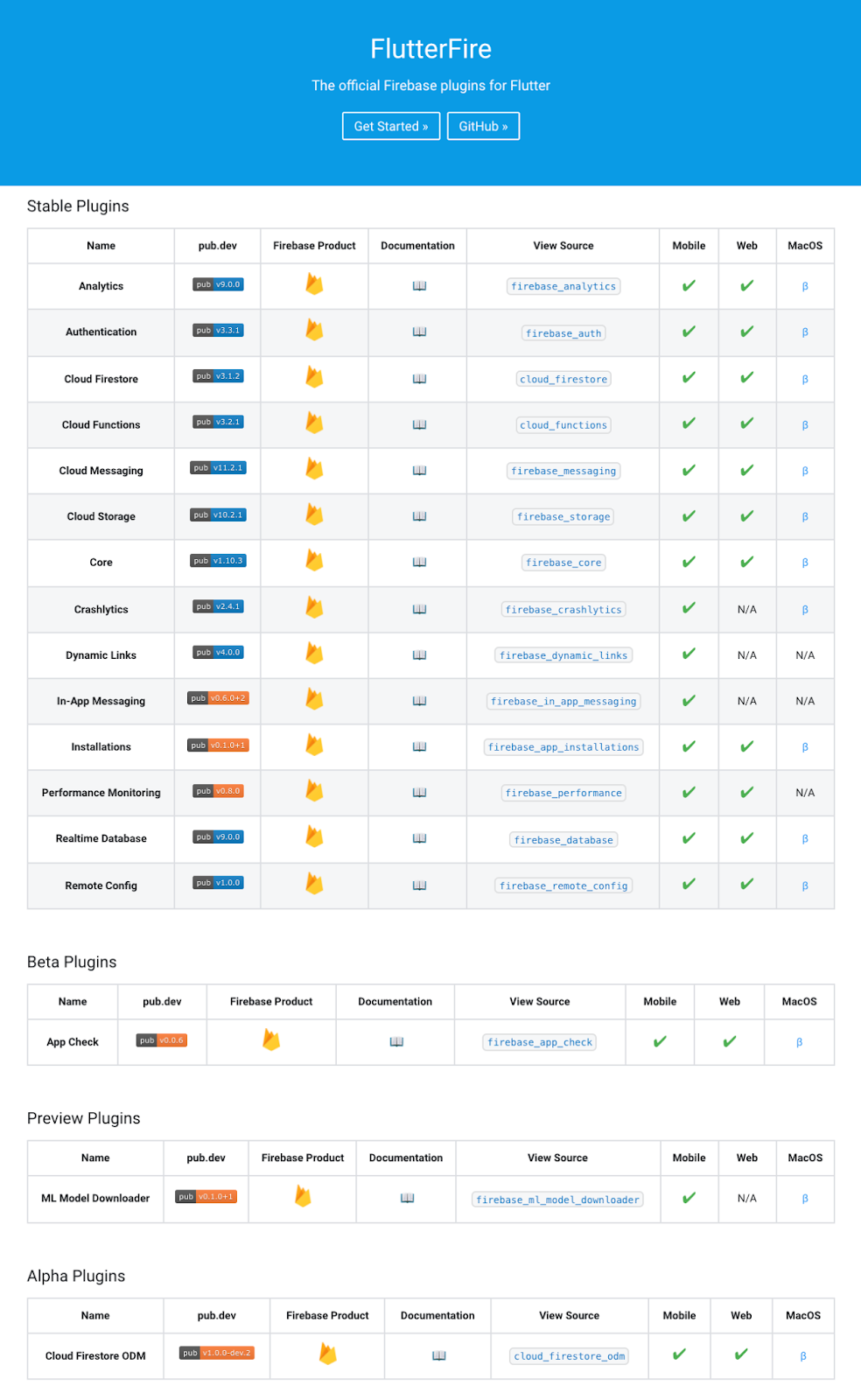 The FlutterFire plugins have (almost) all moved from beta to stable quality.