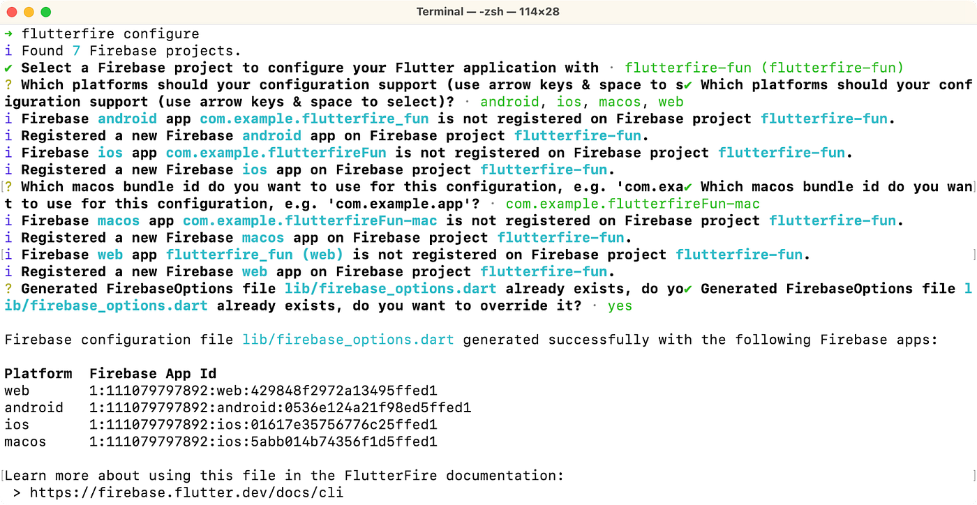This code initializes a Firebase app using the options appropriate for each supported platform as defined in the firebase_options.dart file, which contains per-platform data structures that look like this:https://medium.com/media/f8b48d6f8a8a81f7e150e39e17228bbf